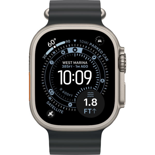 Большой дисплей Retina с высокой яркостью обеспечивает отличную читаемость даже при ярком солнце. Усиленный корпус из титана и сапфировое стекло защищают устройство от механических повреждений. Дополнительная программируемая кнопка Action Button позволяет быстро запускать нужные функции — тренировки, секундомер или другие сценарии использования.